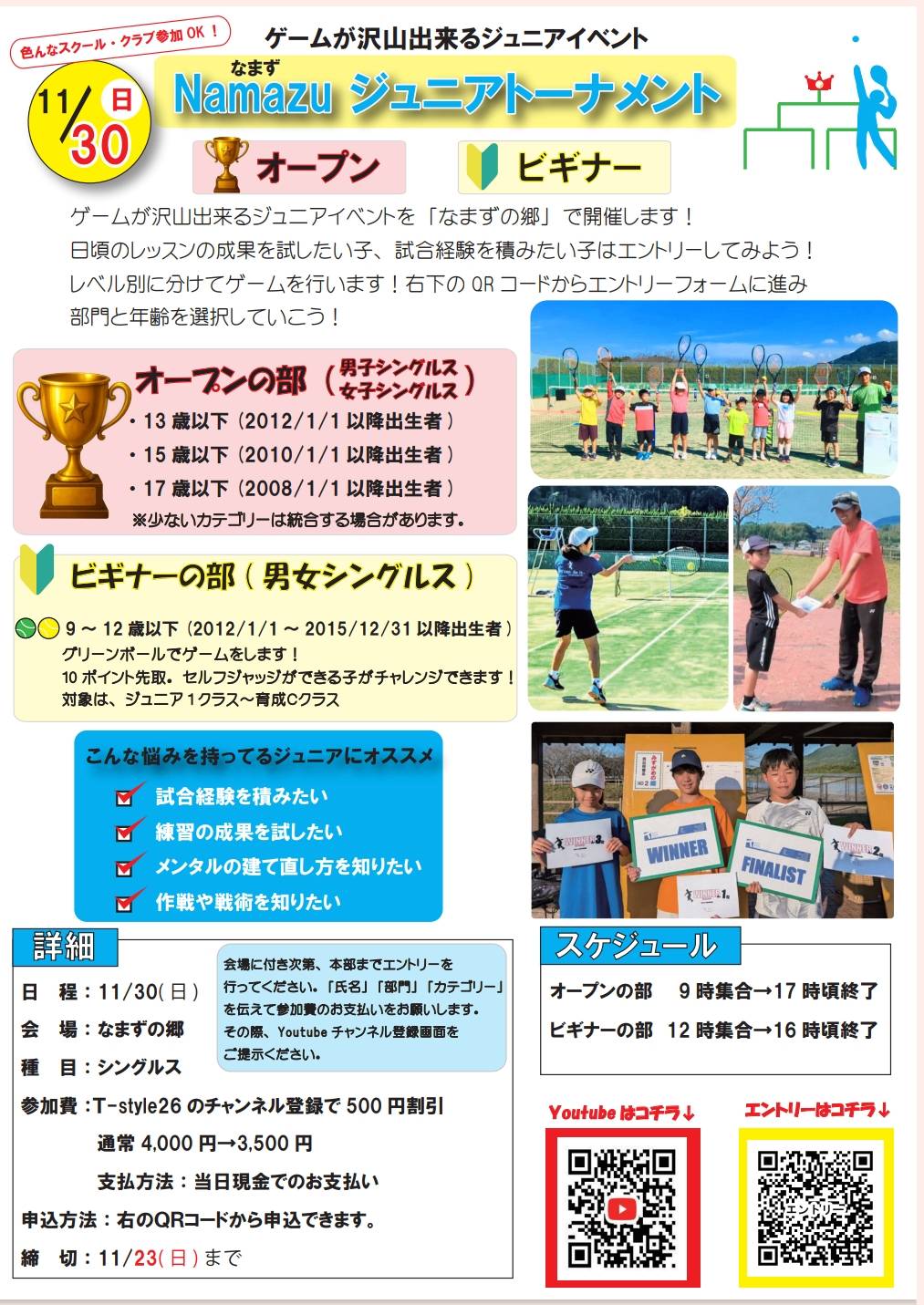 🎾NAMAZUジュニアトーナメント開催! 🎾