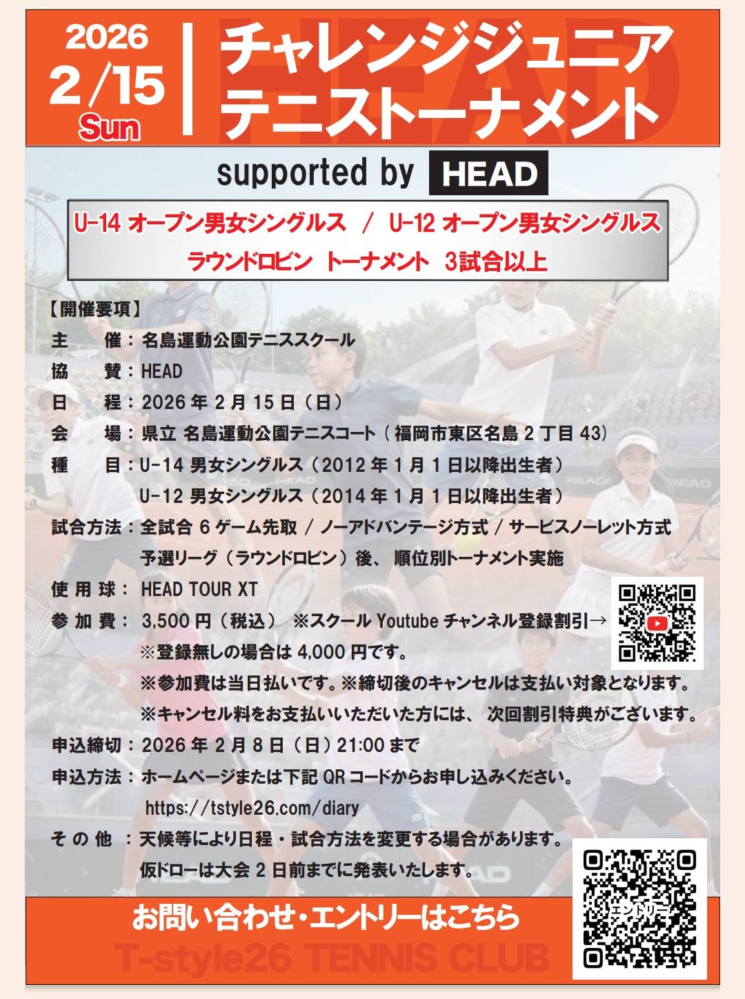 2026年 2/15㈰チャレンジジュニアテニストーナメントsupported by HEAD
