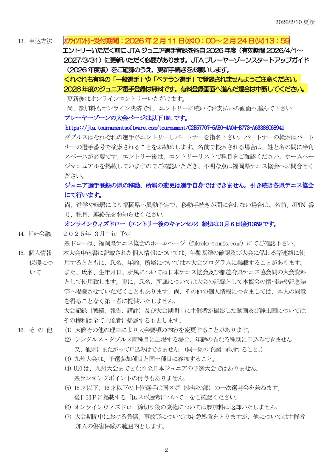 オンラインエントリー期間:2026年2月11日〜2026年2月24日(火)13:59